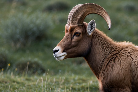 Closeup of a horned animal in nature