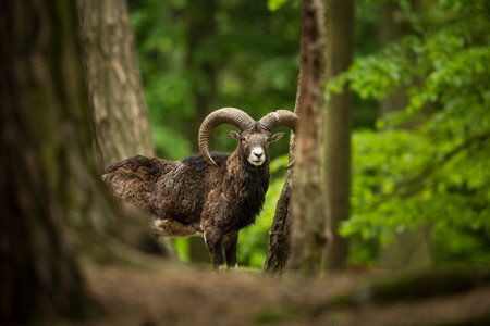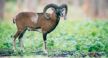 A male muflon in the forest