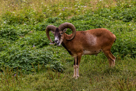 Mouflon ram on a pasture in natural environment.