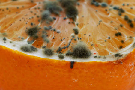 Very Close Macro Photo of grey Mould Spots on Orange Skin