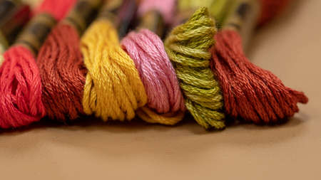 Embroidery Floss Soft Colors of threads. Close up Macro.