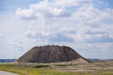 A square (1:1) formatted photograph featuring an isolated, small hill of freshly dug earth. The comp