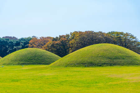 Tumuli park containing several royal tombs at Gyeongju, Republic of Korea