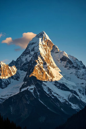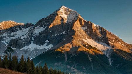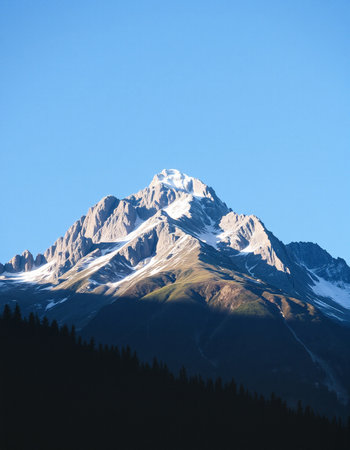 Stunning Snow-Capped Mountain Peak Surrounded by Glaciers and Clear Blue Sky for Winter Adventure