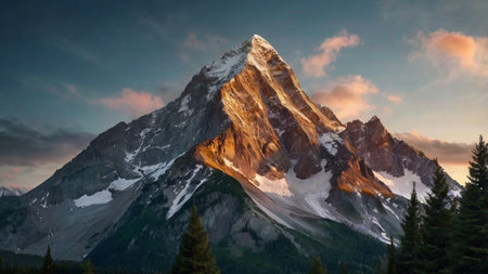 Beautiful Mountain Peak near White Pass and Skagway, Alaska, United States of America. Sunset or Sunrise Colorful Sky