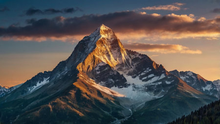 Magnificent panoramic view of the sunrise over Snow Mountain