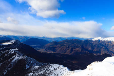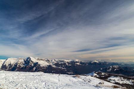 Winter panorama from Italian alps, top of a mountain, Cima Larici Asiago.