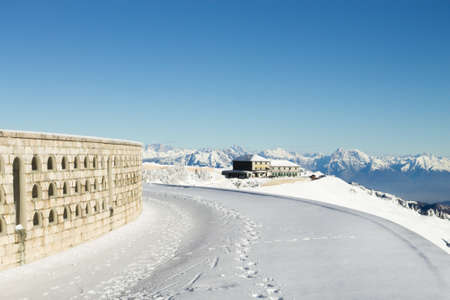 Monte grappa first world war memorial winter view, Italy. Italian landmark
