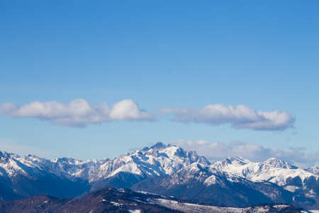 Mountains in Pordenone, Italy. Mountain chain with peaks covered by snow.