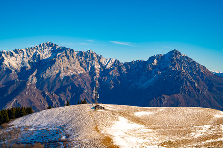 Mount Grappa winter landscape. Italian Alps beautiful view