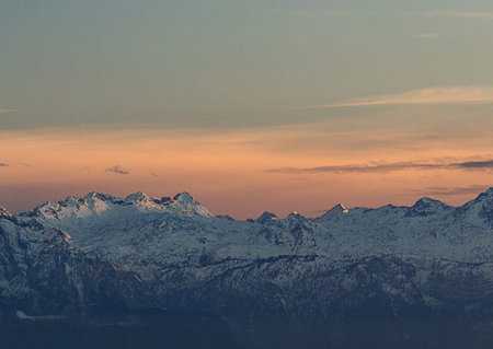 Sunset at the Cuarnan peak, Friuli-Venezia Giulia Region, in a freezing winter day