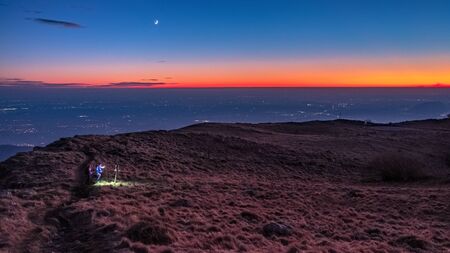 Elevated view of mountains at dusk, Monte Generoso,Ticino, Switzerland