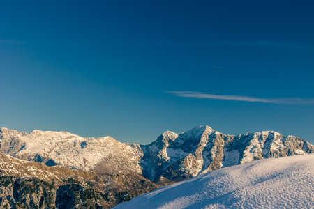 Mountain winter landscape. Mount Grappa with snow. Italian Alps