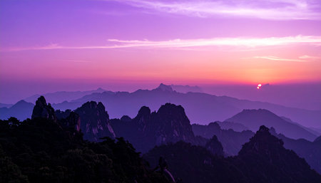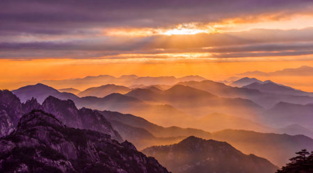 Huangshan Mountain Landscape at Sunset, Anhui Province