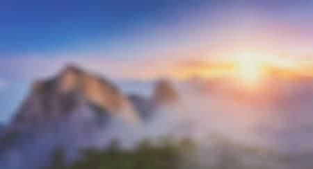 Mountain landscape with trees on a clear day above the clouds at sunrise in san qing China
