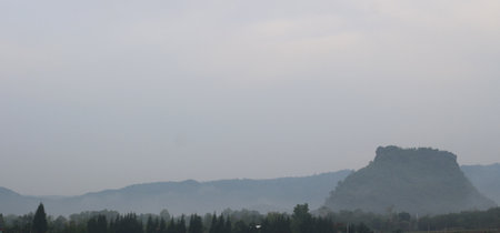 mountain layers with hazy sky at morning from flat angle image is taken at itanagar arunachal pradesh india.