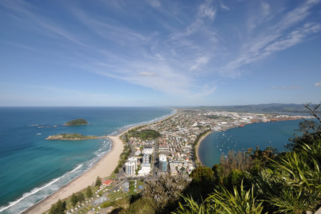 View on Touranga city and Papamoa Beach from Mount Maunganui on northern island of New Zealand
