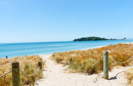 View of the beautiful beach and camping place in Mount Maunganui, New Zealand