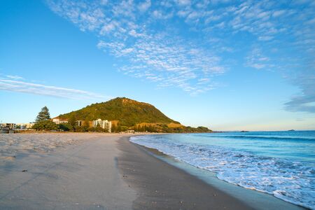 Mountains in Ocean, famous Mount Maunganui Beach, New Zealand