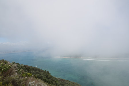 Coastal Headland Overlooking Misty Turquoise Bay