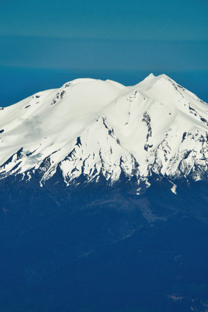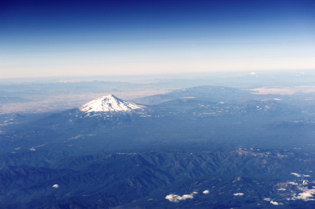 View of snow capped mount shasta from a commercial airliner