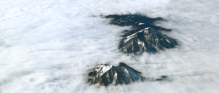 View of the Kamchatka mountains from the airplane porthole, Russia, Kamchatka Peninsula