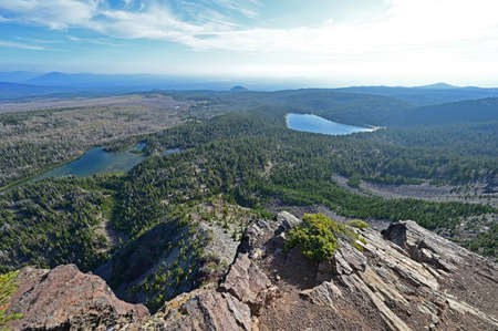 View of Middle and North Sisters volcanoes from Tam McArthur Rim Trail in Three Sisters Wilderness near Sisters, Oregon.