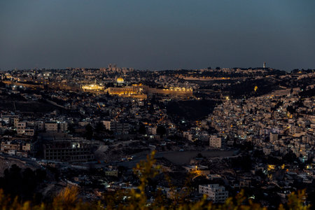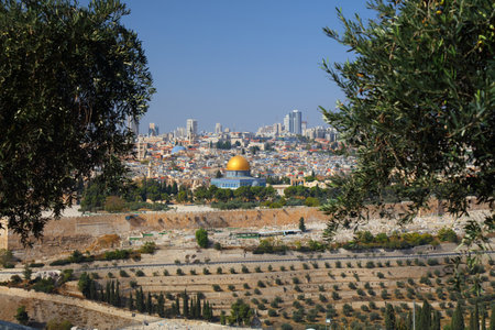 View of Holy city of Jerusalem in Israel from the Mount of Olives.