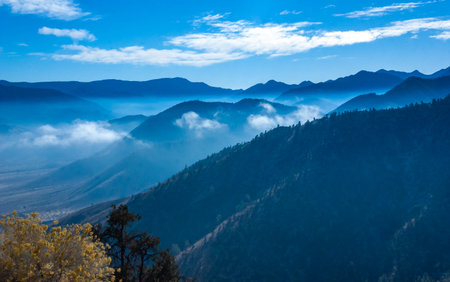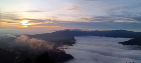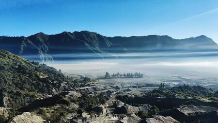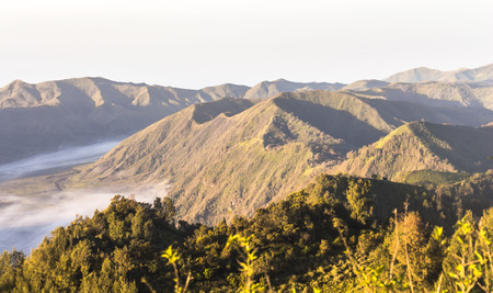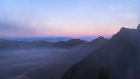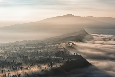 Mountain area in the early morning, while the valley covered by thick mist. Location : Bromo, East Java, Indonesia