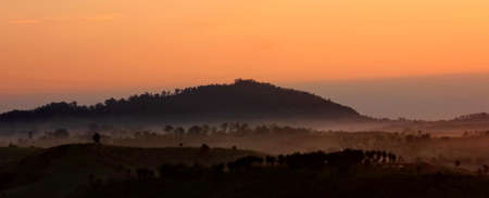 landscape panorama mist around mountain , sun rise impact mist round mountain with orange sky background