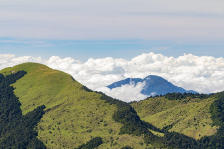 The Clouds covering the Mountain peaks. Mt. Prau Indonesia