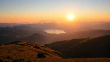 the sun rises on the mountain tops sindoro, wonosobo, west java, indonesia