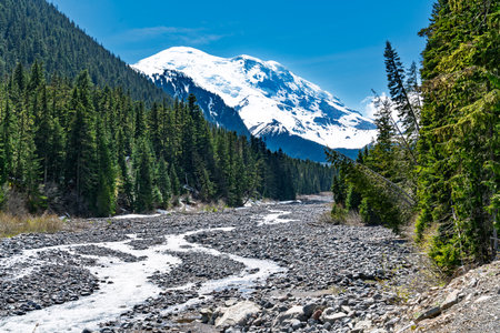 Cloudless view of Mt Rainier from Mt Fremont Lookout Trail, USA