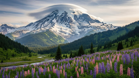 Mt. Rainier national park. Wildflowers at 7000 feet mt. Rainer Washington