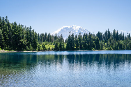 Summit Lake with Mount Rainier in the background. Mount Rainier National Park. Washington State.