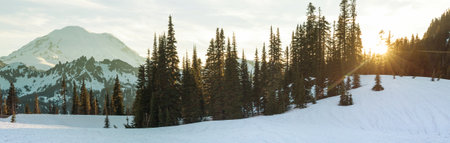 Panorama Of Mount Rainier At Sun Set From Stevens Canyon Road in Mount Rainier National Park