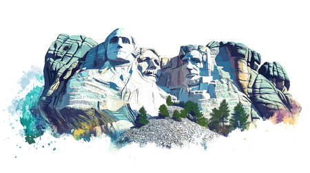 Mount Rushmore National Park, South Dakota, USA, original hand drawn illustration.