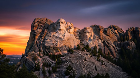 Sunset Colors over Mount Rushmore in South Dakota, U.S.A.