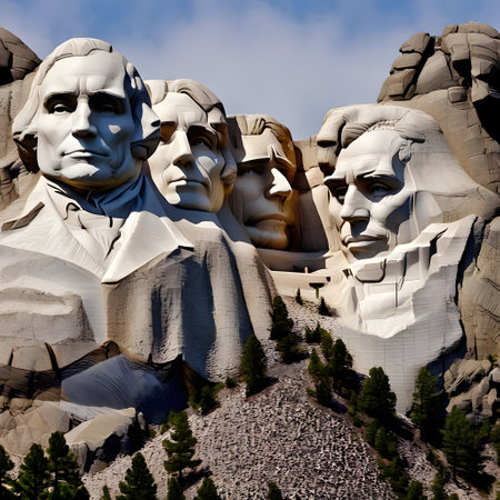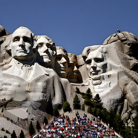 A stunning view of Mount Rushmore with presidential faces carved into the mountain under a blue sky