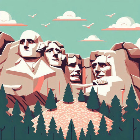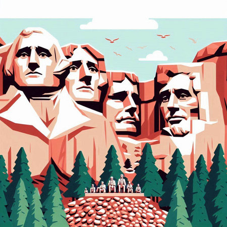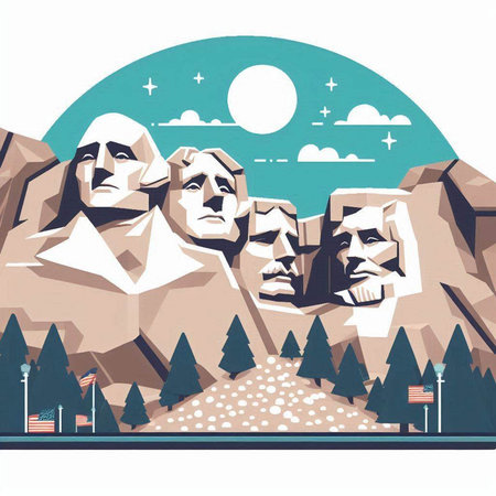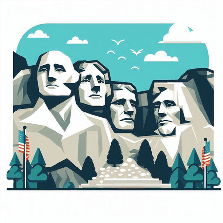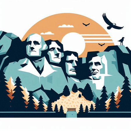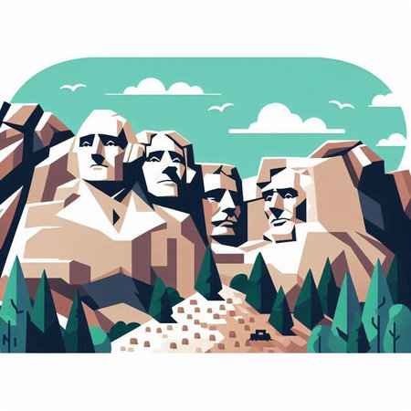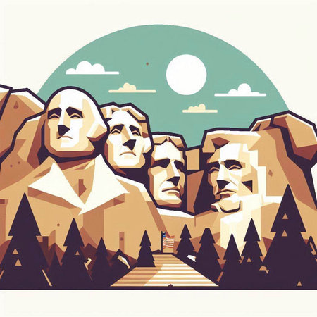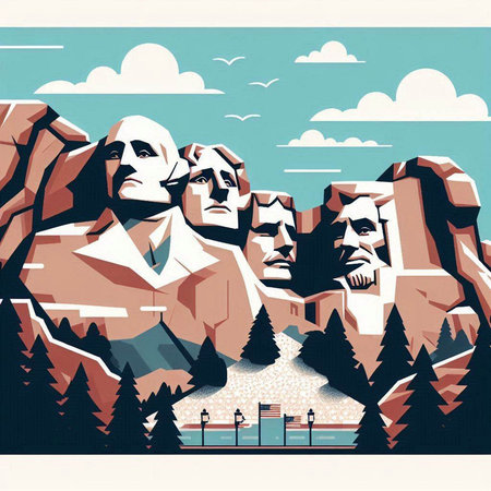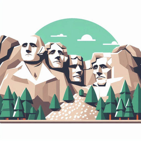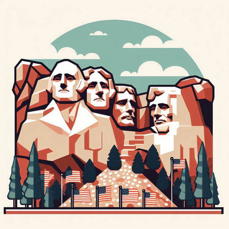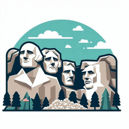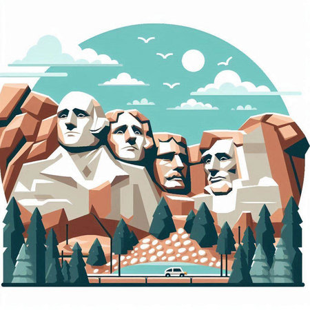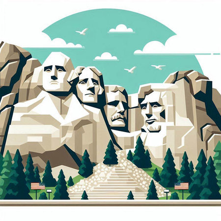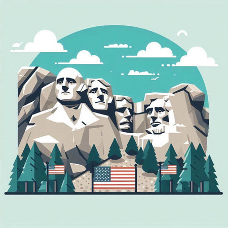 Mount Rushmore National Park, South Dakota, USA. Vector illustration.