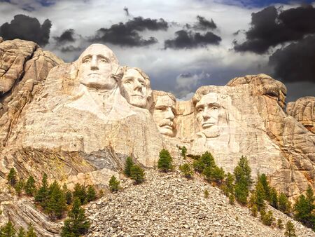 Dramatic sky above Mount Rushmore in South Dakota, U S A