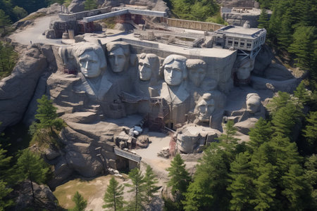 Captivating Aerial Perspective of Mount Rushmore Replica in Abandoned Western Theme Park, Tochigi, Japan