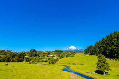 Volcano Osorno in national park Vicente Perez Rosales, Chile. Copy space for text
