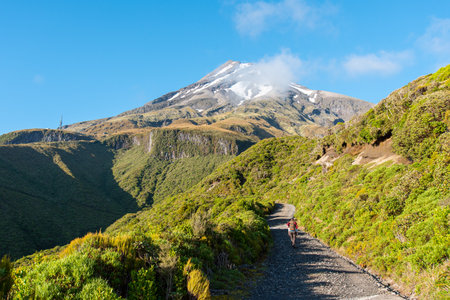Hiking the Mount Taranaki on a sunny summer day, New Zealand