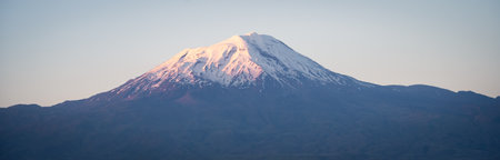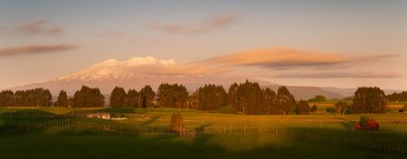 Panoramic view of magnificent Mt Ruapehu at sunset