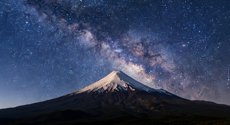 Fuji mountain summit with golden light in evening, Japan