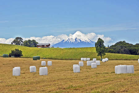 A farm with Mt Egmont, Taranaki in the background