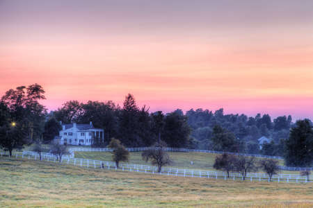 Beautiful farmhouse in the countryside in the evening. Beautiful landscape.