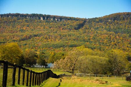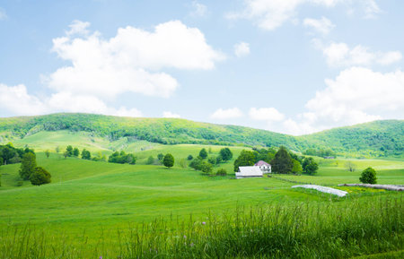 Farm scene in Burkes Garden Va,green grassland blue sky
