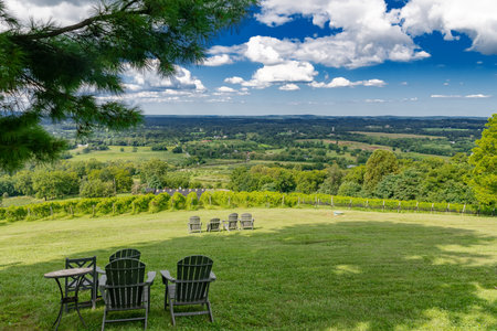 Staatsburg, NY - USA -July 1, 2021: Three quarter view of the front of the Staatsburgh State Historic Site, a Beaux-Arts mansion designed by McKim, Mead, and White.